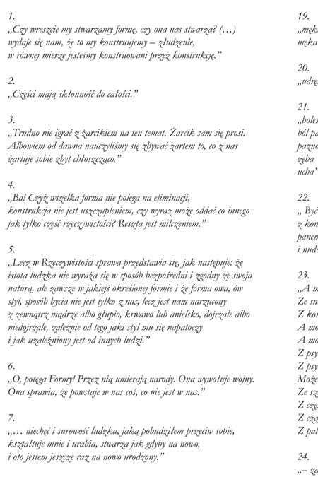 „Czy wreszcie my stwarzamy formę, czy ona nas stwarza? (…) wydaje się nam, że to my konstruujemy – złudzenie. W równej mierze jesteśmy konstruowani przez konstrukcję” W. Gombrowicz, Ferdydurke
