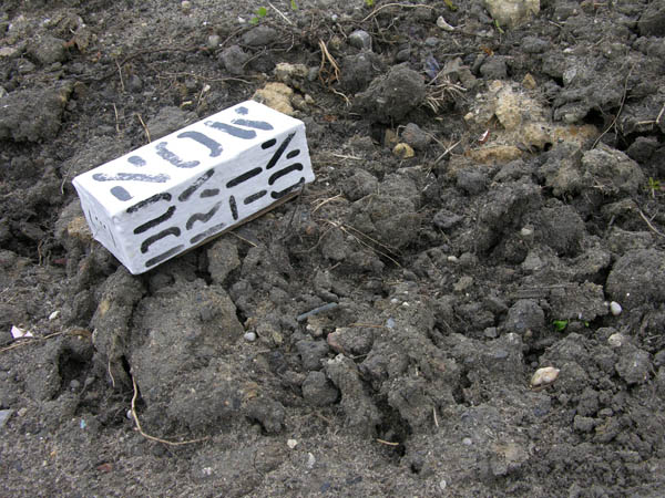 stencil print on paper, styrofoam cube / 8 x 16 x 7 cm
