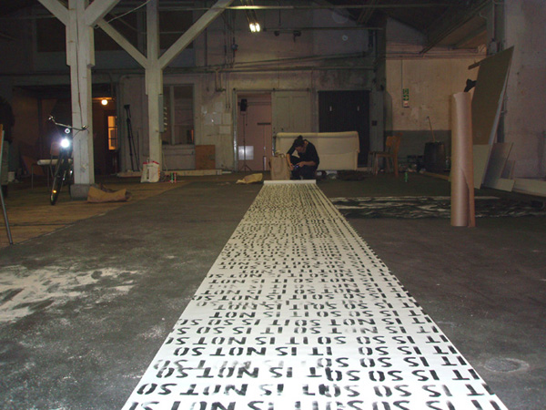 From 1995-98 Dieter Roth had his studio there (in this place he worked on his prose and lyrics) these pieces of information, the place itself and contents of the basments of the builging (opulence of printed material stored there, books, old magazines for printers and typographers... many many printed words everywhere) inspired me to realize this work... |