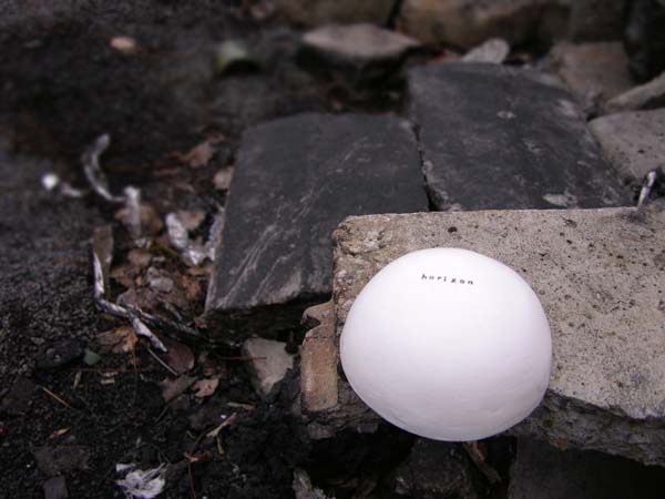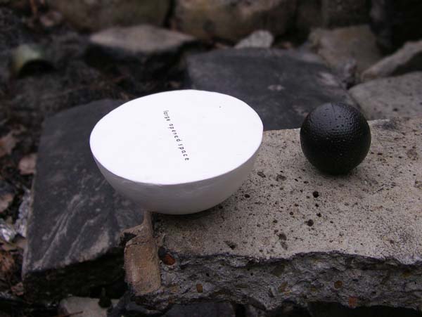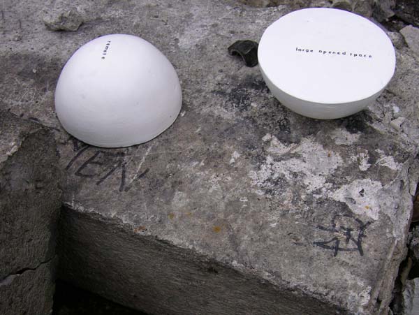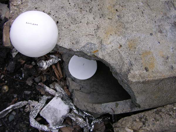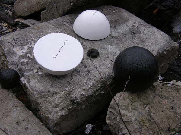 large opened space -remote // far-horizon 2008 gips, biała i czarna farba, styropianowe czarne kulki plaster, white and black paint, styrofoam black balls