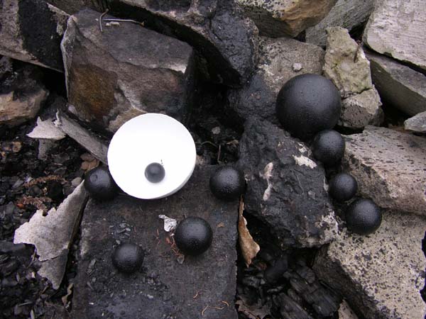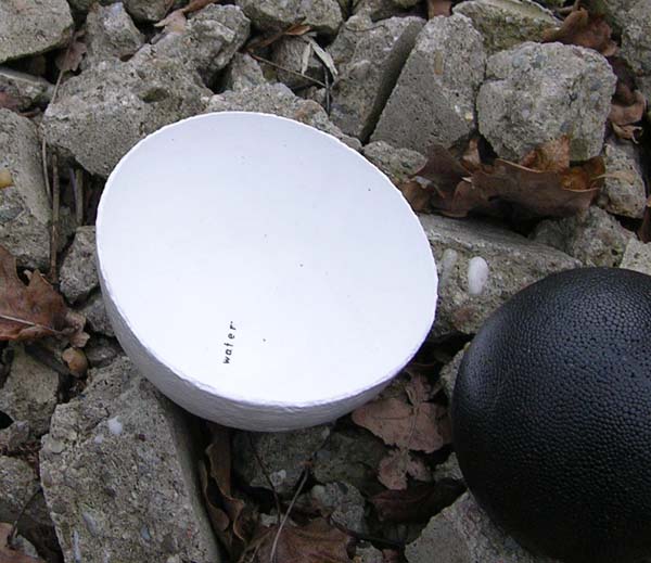 snow-water 2008 papiermache, gips, biała i czarna farba, styropianowe czarne kulki papiermache, plaster, white and black paint, styrofoam black balls
